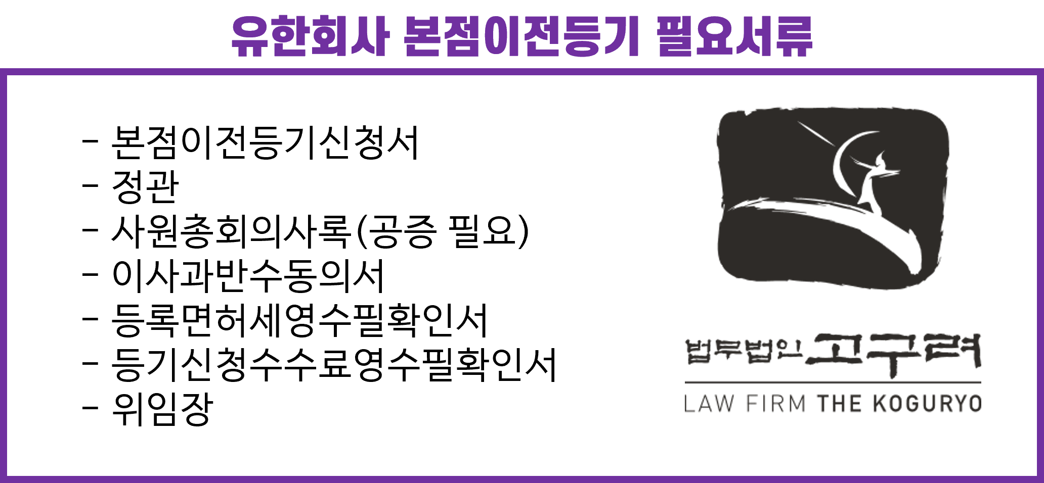 안녕하세요, 법무법인 고구려 등기팀입니다.